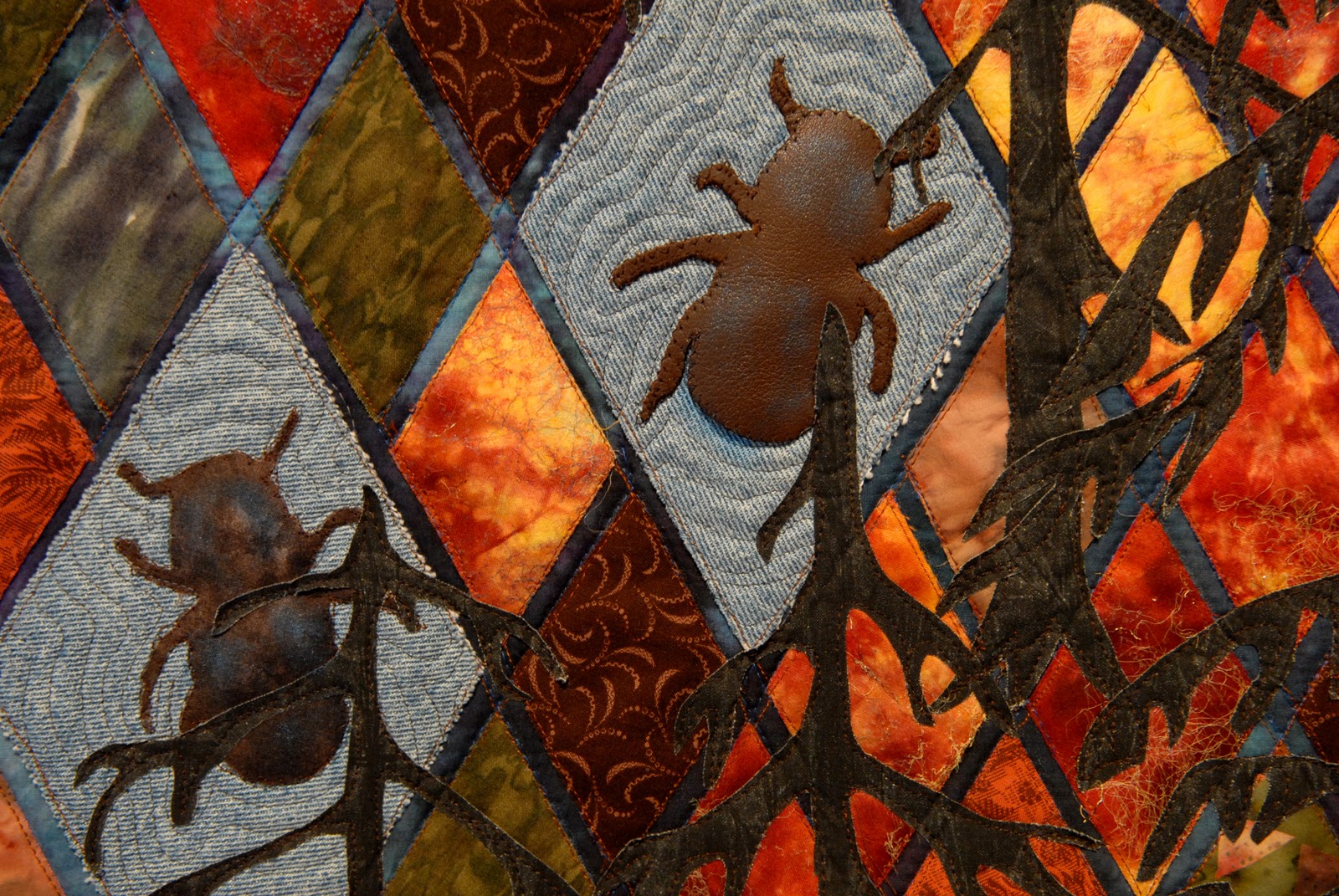 Together is a collaborative project between pairs of Canadian artists – one working in fibre and the other in their chosen media. This exhibition has brought together a group of textile, quilt, and fibre artists working in a wide range of styles and paired them with are painters, woodworkers, mixed media artists, potters, and glass artists. Each pairing of artists chose their own theme and their themes are as diverse as their media.